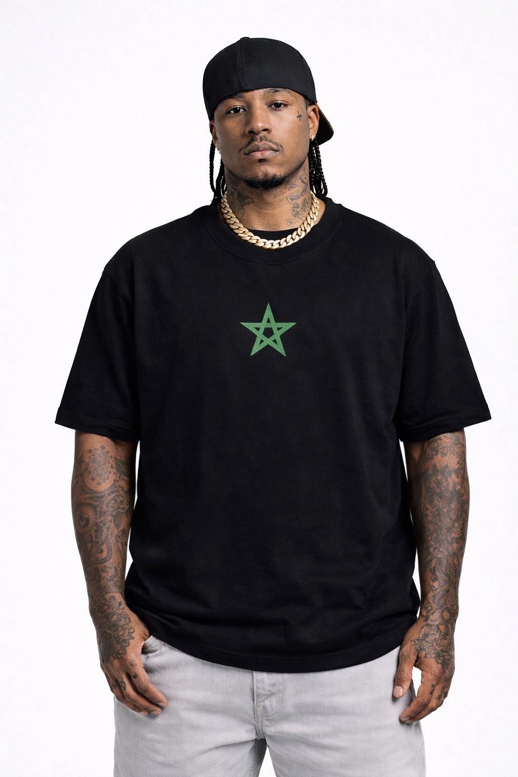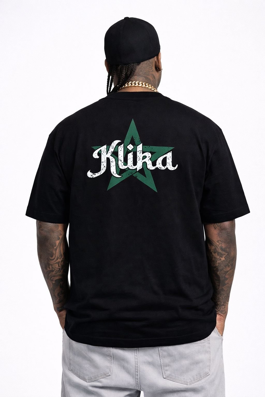 A simple but powerful streetwear essential. The Klika Minimal Green Star T-Shirt features a clean black base with a bold green star graphic printed on the chest. Designed with an oversized fit and soft fabric, it delivers maximum comfort and a stylish relaxed look — perfect for everyday wear, skate style, or casual outfits.